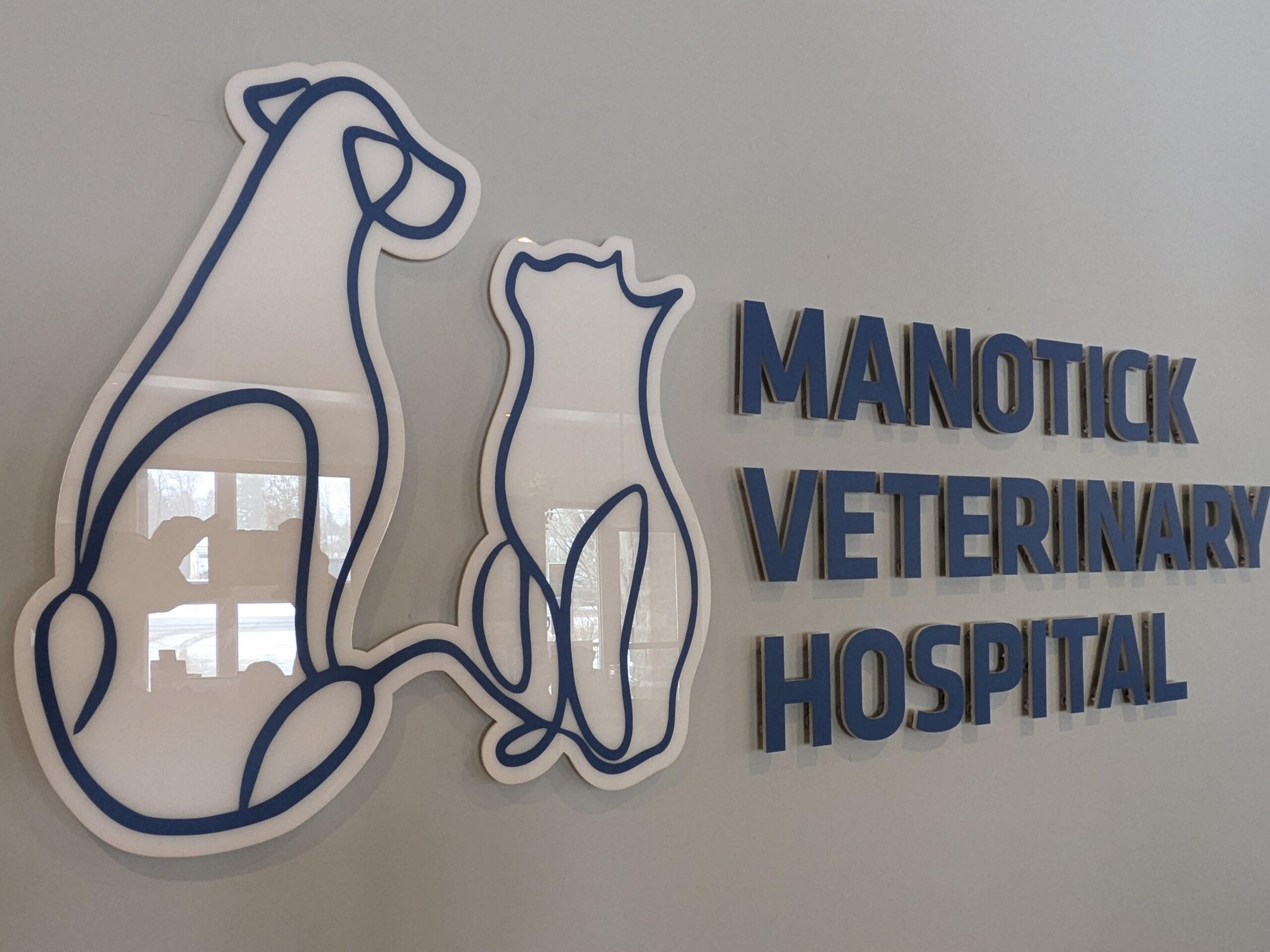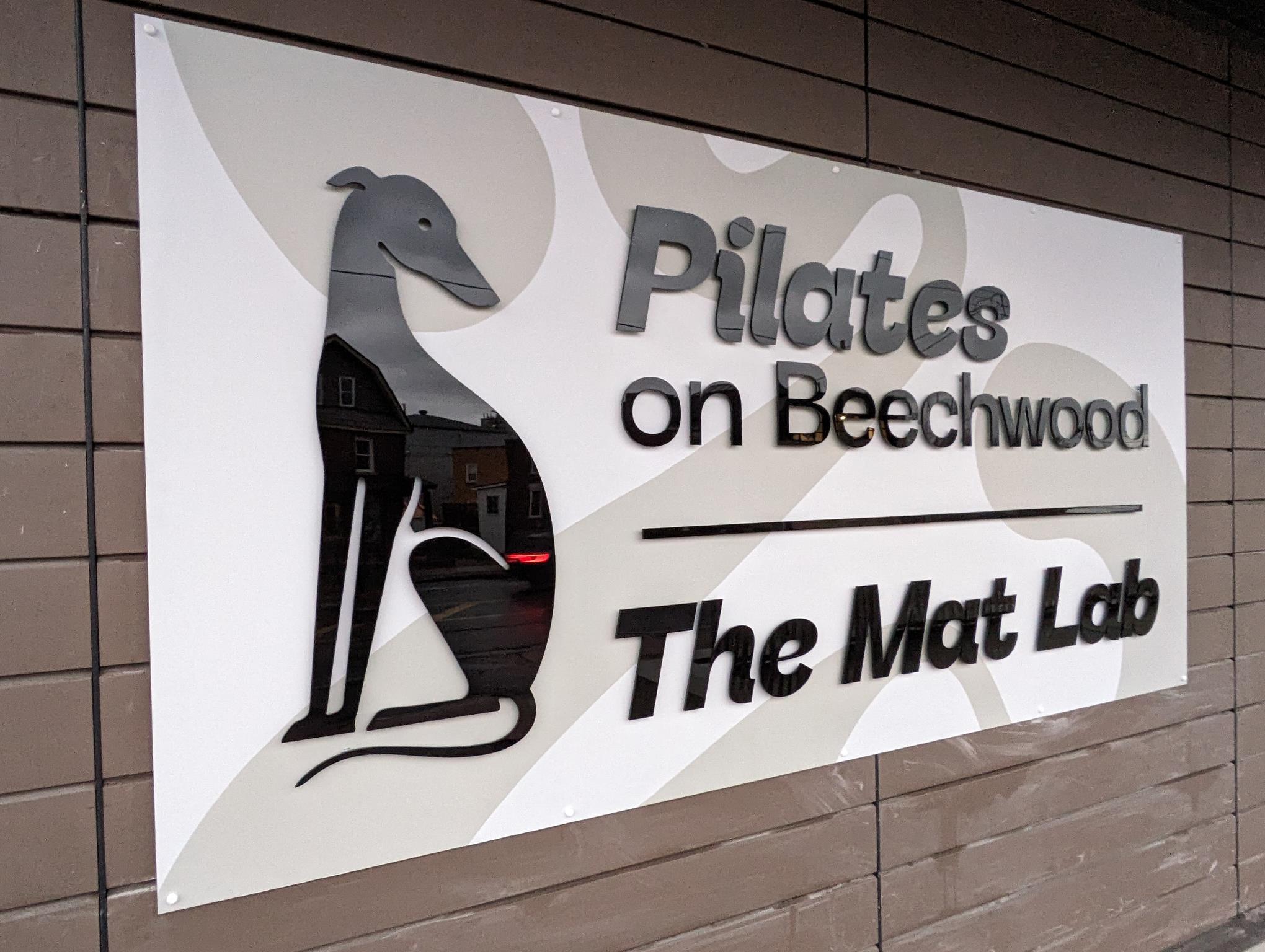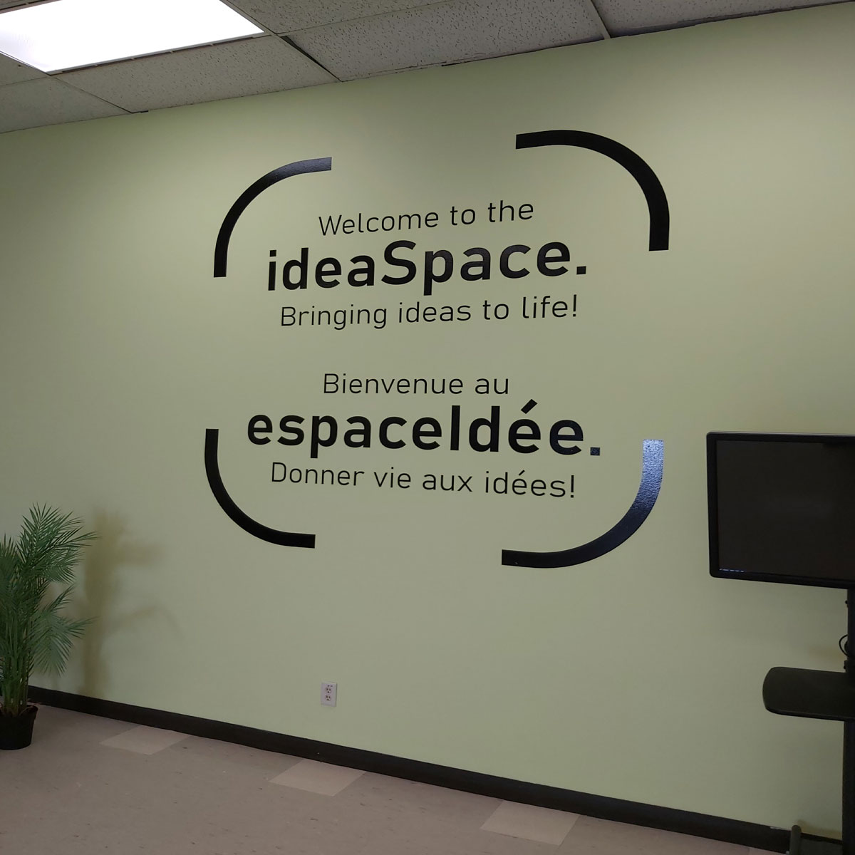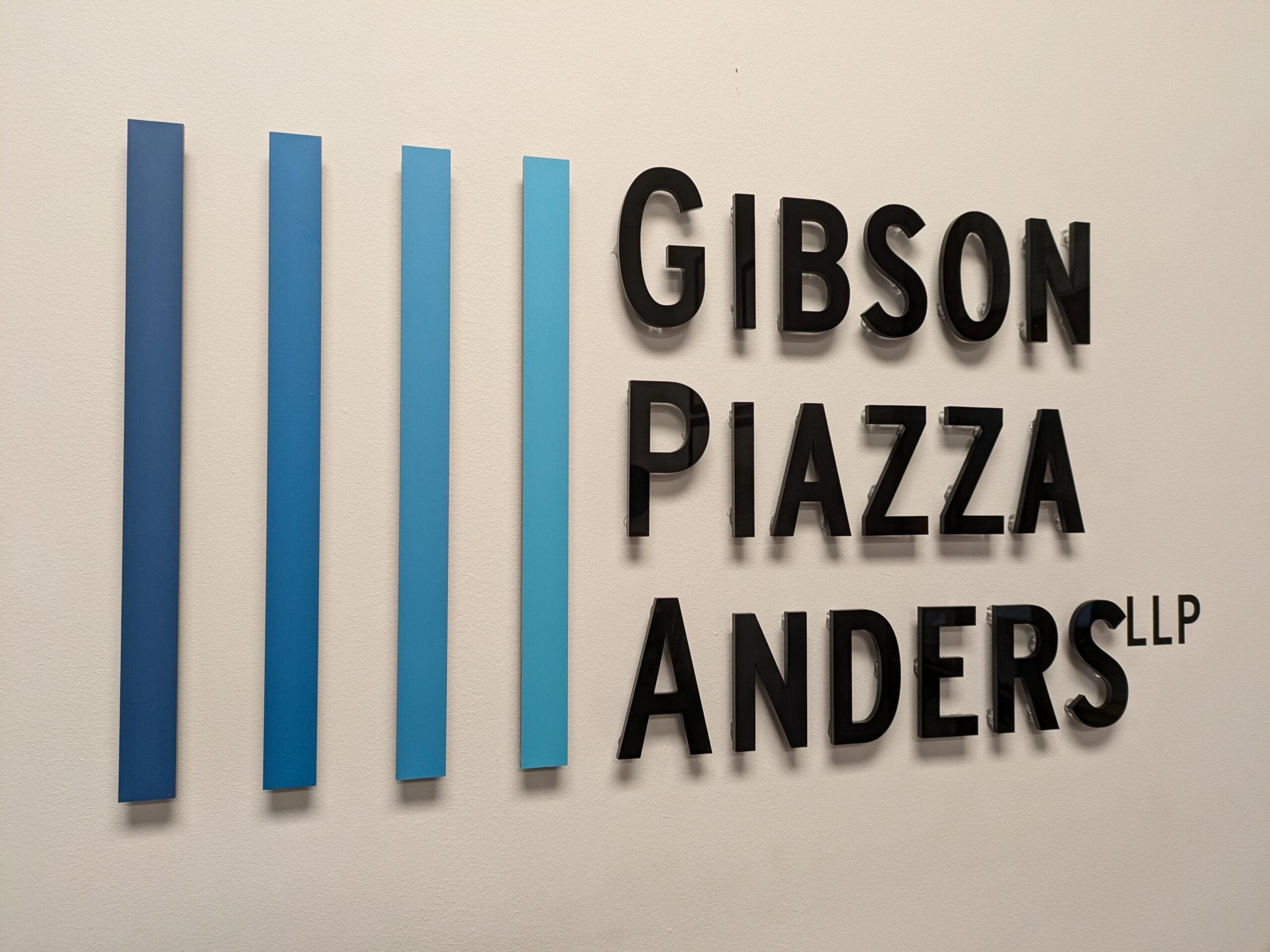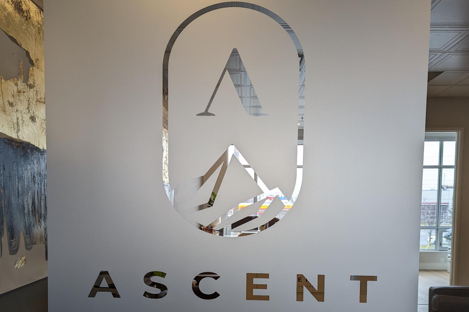 Dimensional letters or logos mounted to walls with pins, adding depth and a professional look.