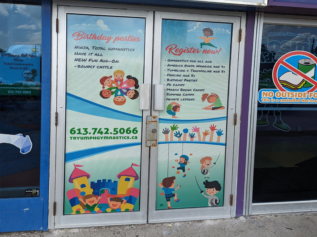 Full-coverage graphics for windows, perfect for branding or promotions.